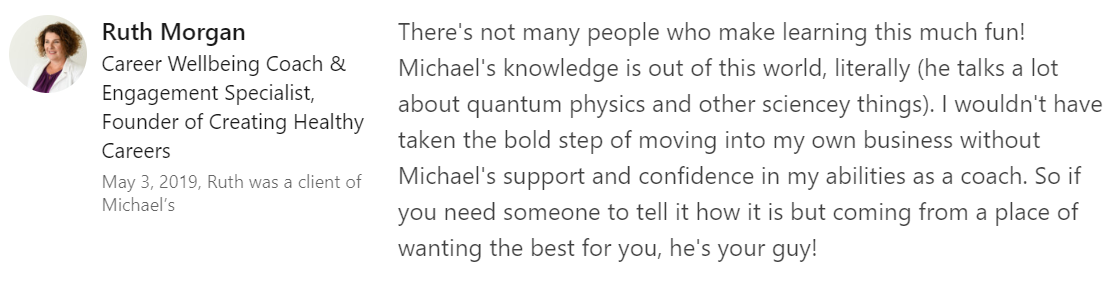 Michael has been featured and interviewed on radio, magazines and newspapers across the country and internationally. As a powerfully authentic and inspiring presenter, Michael is able to deliver high level content in a way that is simple to understand and easy to implement effectively.