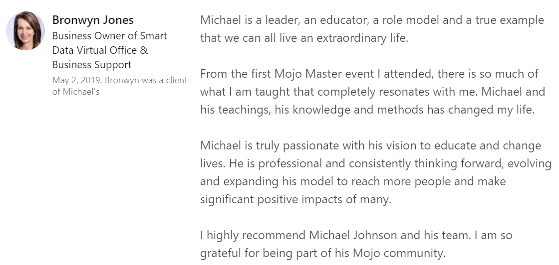 Everything we teach at The Mojo Master is backed by science and has been implemented and observed by Michael within his own life and the lives of his clients.